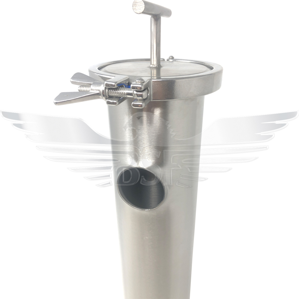 The 90° product strainer is designed specifically for finer filtration of product, and to remove potentially unwanted items in the product. The body is much larger than the pump protection strainer to keep back pressure and pressure drop to a minimum.