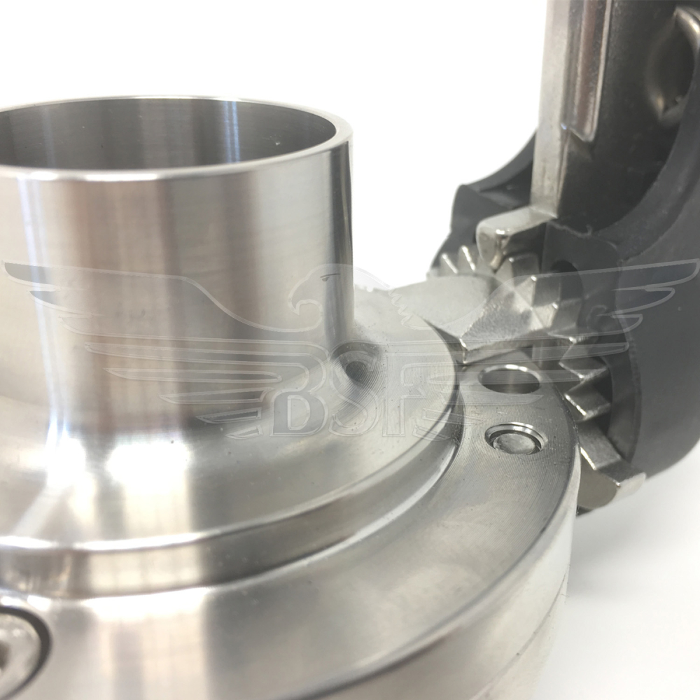 316L stainless steel body with machined finish, and highly polished machined disc.